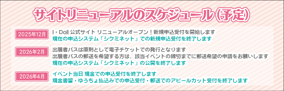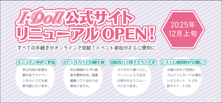 ※『仙台コミケ284』と同時開催のため、準備時間がI・Doll単独開催時より短くなる場合がございます。