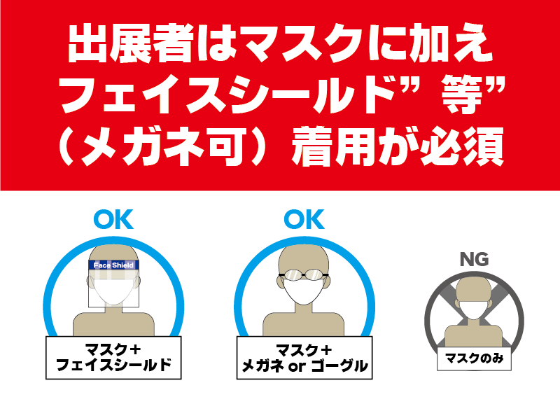 - 出展者・コレクションブース利用者は、フェイスシールド”等”の着用が必須です。