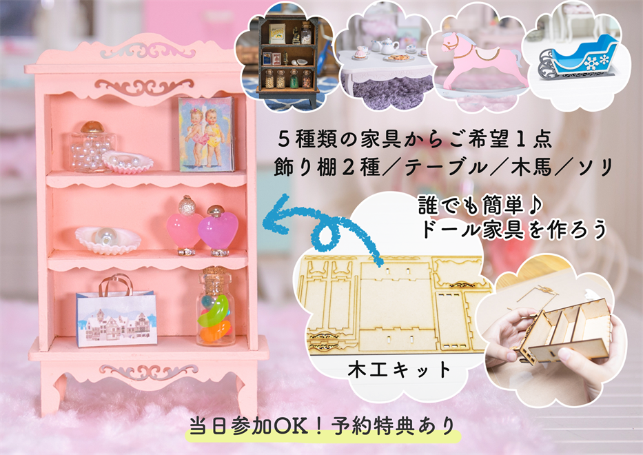 ※家具キットが売り切れの場合もございますので、11月26日までにご予約いただければご希望の家具でご参加いただけます。当日在庫があれば他キットにも変更が可能です。