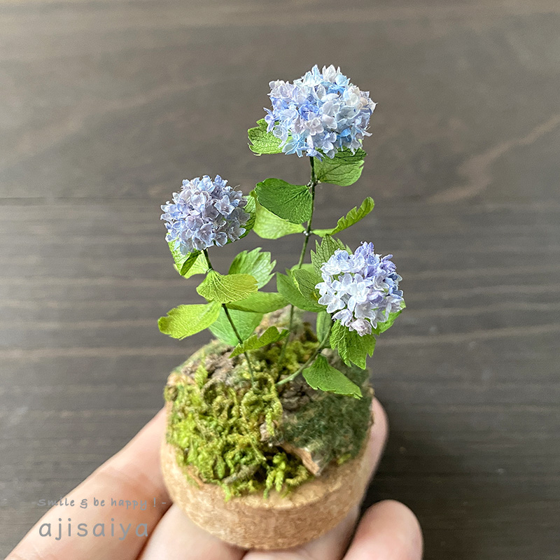 手のひらサイズのミニチュア紫陽花づくり
