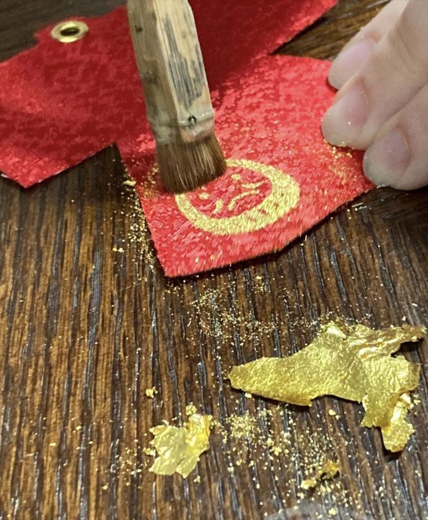 - 着物などに加工している技術、本格的な伝統工芸で使われる金箔貼りを体験